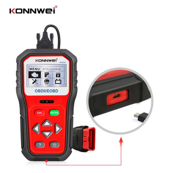 KONNWEI KW818 OBDII/EOBD Scanner supports all 10 modes of OBDII test for a complete diagnosis. Featuring the unique patented One-Click I/M Readiness Key, white and black display and built-in speaker, the KW818 is truly the ultimate in power and affordability, allowing users to do their jobs faster. In addition, thousands of troubleshooter code tips help technicians to save diagnosis and repair time.